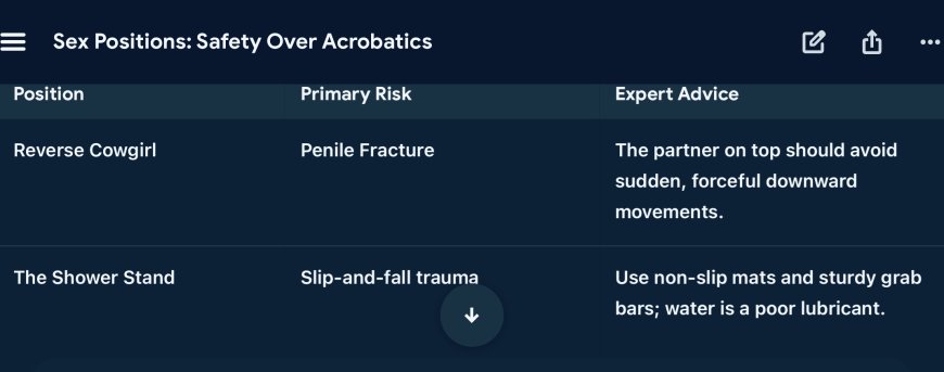 Using chairs, counters, or stairs adds an element of instability. A slip can lead to head injuries or broken bones. Furthermore, positions that involve deep penetration at awkward angles increase the risk of penile fracture—a clinical emergency where the tunica albuginea (the membrane surrounding the erectile tissue) ruptures.